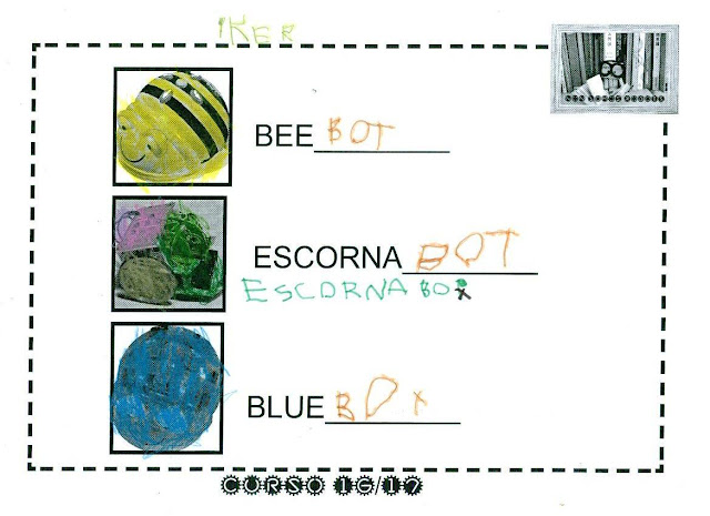 e ver que os tres robots que temos na escola comparten a terminación dos seus nomes ... xogamos a compoñelos e a buscar cal é o animal que os nomea.